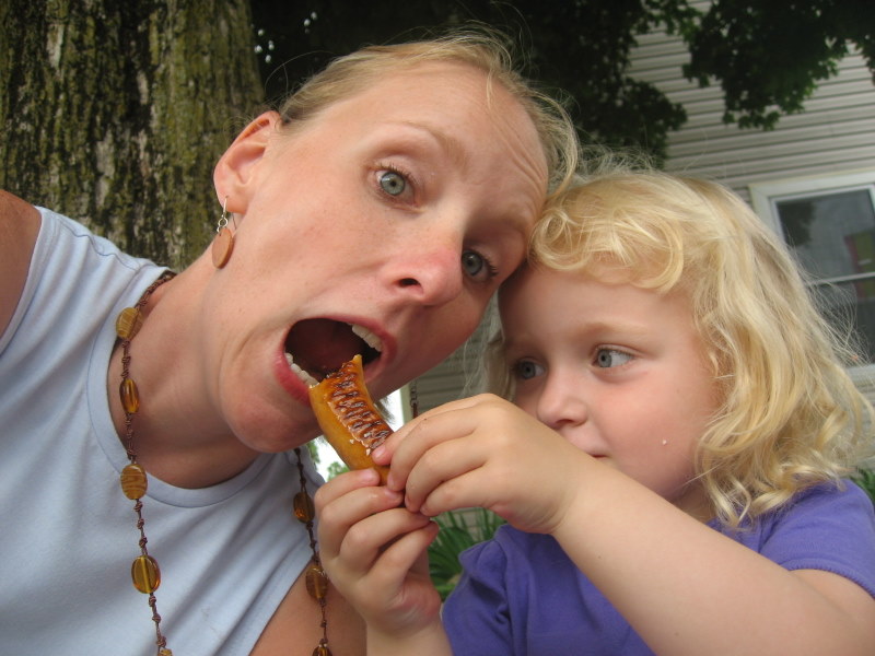 Then she gets all cozy in our bed and tries to wake up while she has her breakfast.